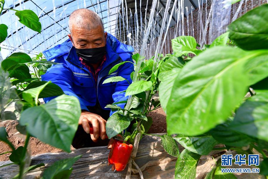 3月18日,在中國(guó)鐵路太原局集團(tuán)有限公司新創(chuàng)云竹生態(tài)農(nóng)業(yè)園,農(nóng)民在采摘辣椒。新華社記者 曹陽(yáng) 攝
