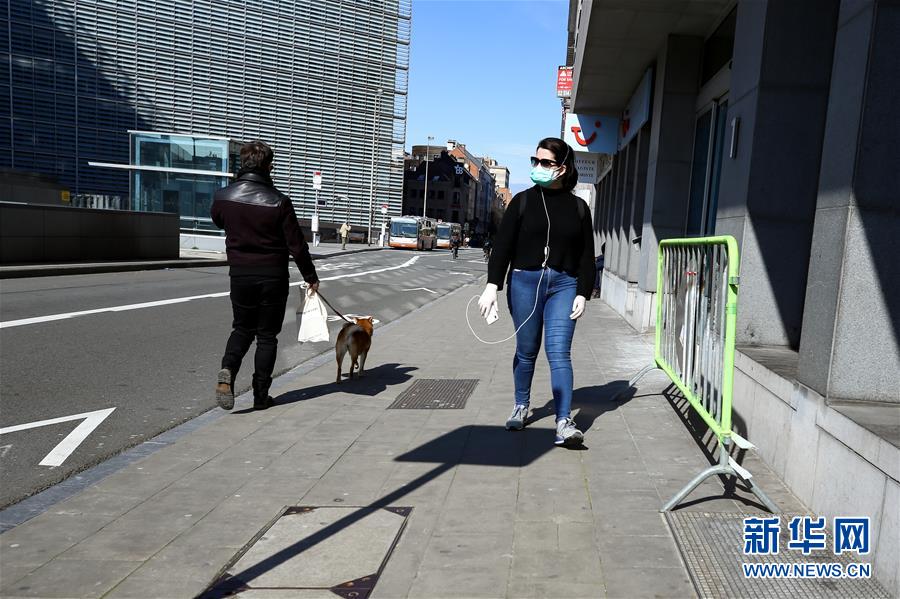 3月18日,在比利時布魯塞爾,佩戴口罩的行人走在馬路上。 截至17日,比利時累計確診新冠肺炎病例1243例,死亡10例,治愈出院15例。比利時首相維爾梅斯當天宣布,從18日12時起全國范圍內(nèi)將實施“封城”,結束時間暫定為4月5日。根據(jù)全國安全委員會特別會議決定,除上下班,購買食品、藥品、就醫(yī)等特定情況外,全國民眾必須待在家中;有條件的企業(yè)必須進行遠程辦公。 新華社記者 張鋮 攝