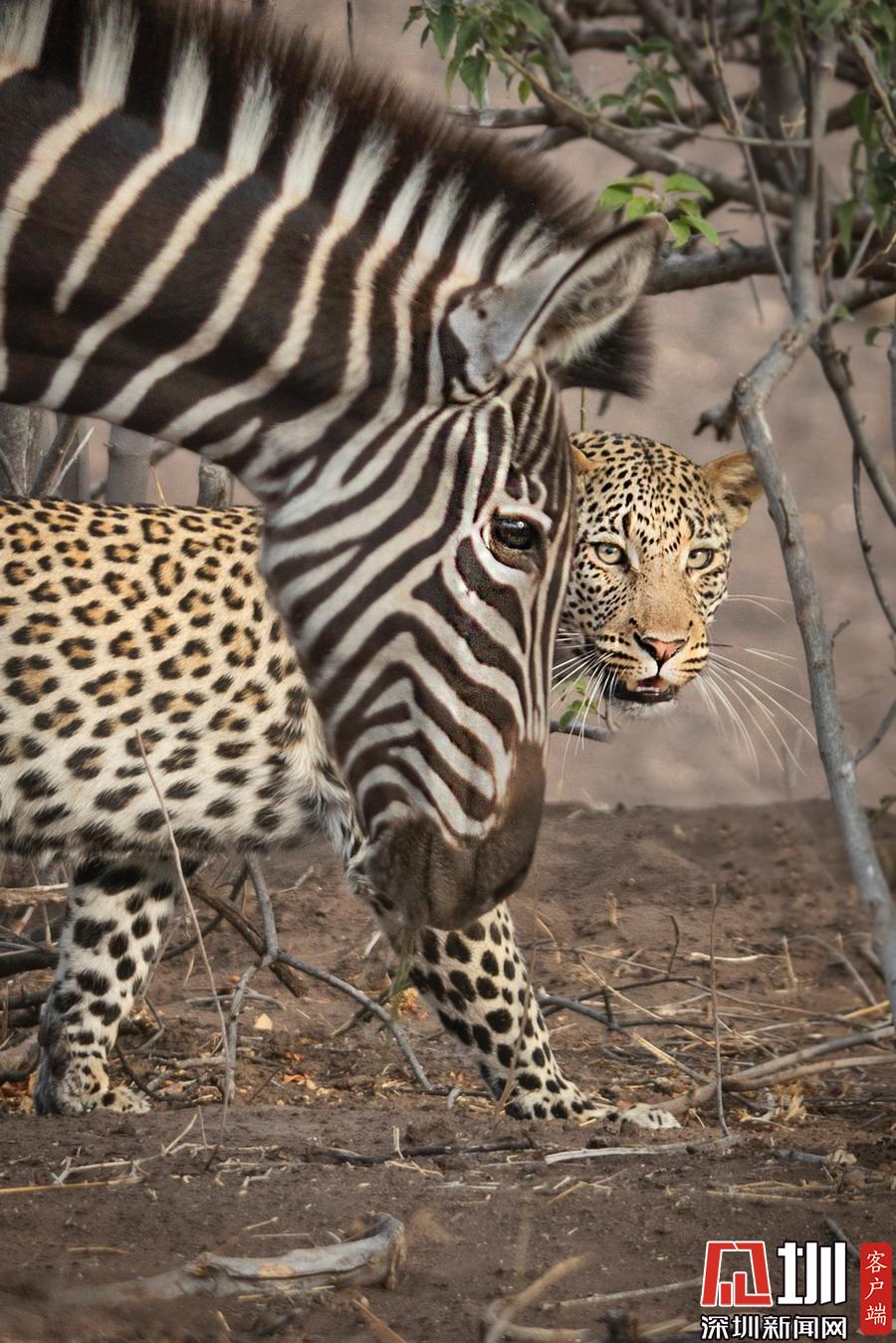 攝影師抓拍神奇畫面:獵豹捕食斑馬失敗 敵人秒變朋友?