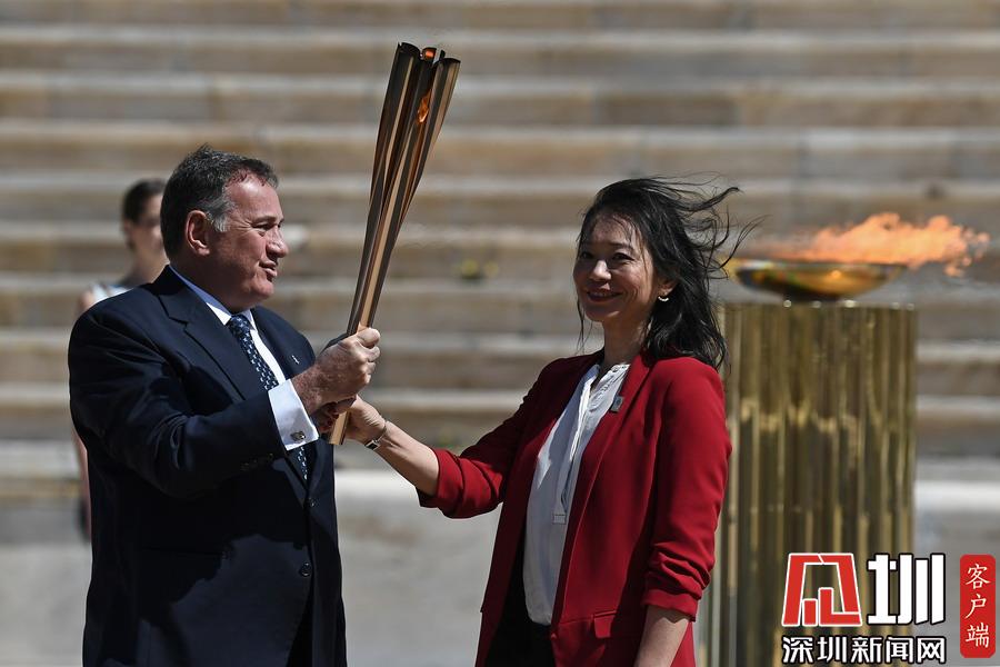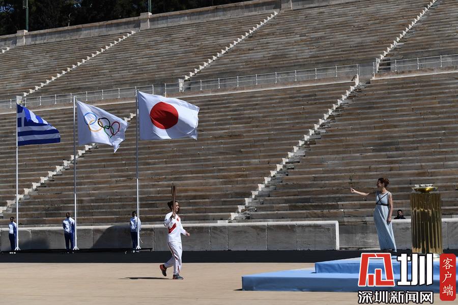 2020年3月18日,2020年東京奧運(yùn)會火炬交接儀式在希臘雅典帕納辛奈科體育場舉行。