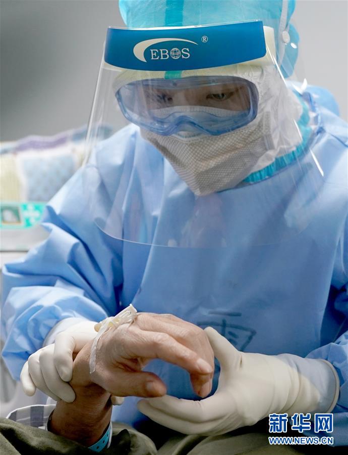 90后護(hù)士文雯在進(jìn)行輸液前檢查留置針情況(3月20日攝)。 武漢火神山醫(yī)院重癥醫(yī)學(xué)一科的護(hù)理團(tuán)隊共50名護(hù)士,其中絕大多數(shù)是80后、90后女性,她們不懼危險,奮戰(zhàn)在抗擊疫情的最前沿“紅區(qū)”。 新華社記者王毓國攝