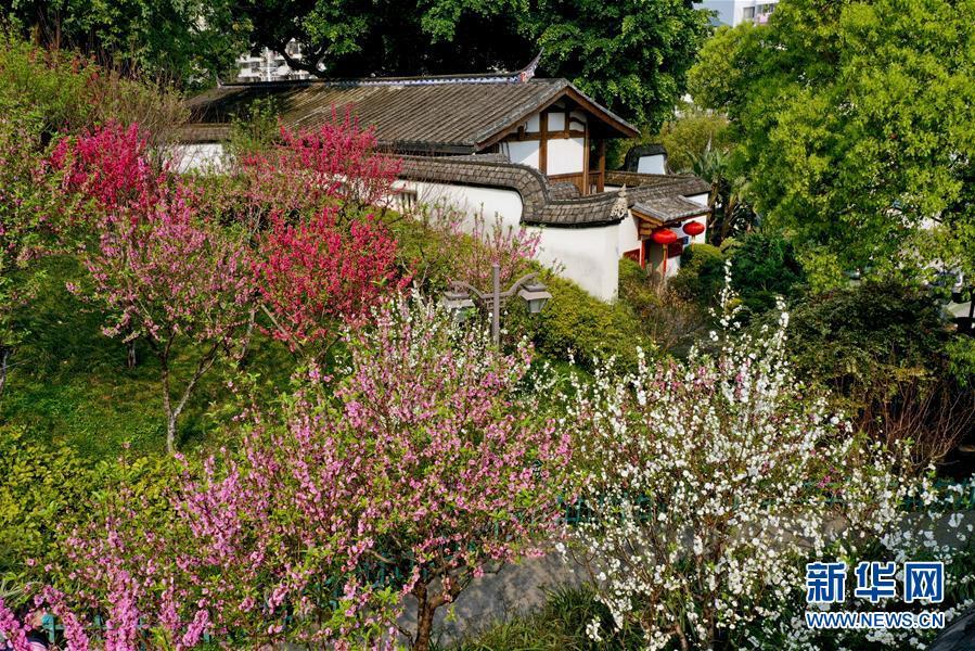3月22日,在福州烏山歷史風(fēng)貌區(qū),桃花與古厝相映成趣(無人機照片)。近日,福建省福州市烏山、三坊七巷等歷史文化街區(qū)內(nèi)草木吐綠,鮮花盛開,掩映著一座座傳統(tǒng)古厝,更顯濃濃春意。新華社記者姜克紅攝