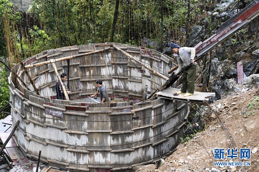 廣西都安瑤族自治縣隆福鄉(xiāng)的村民在修建家庭水柜(3月17日攝)。廣西有近一半貧困人口生活在石漠化地區(qū),涉及數(shù)十個(gè)縣區(qū)。這里也是廣西飲水保障程度最低的地區(qū),解決貧困人口飲水問(wèn)題是廣西脫貧攻堅(jiān)戰(zhàn)“硬仗中的硬仗”?!笆濉币詠?lái),廣西加快實(shí)施農(nóng)村飲水安全鞏固提升工程。因地制宜,采取新建、擴(kuò)建及管網(wǎng)延伸等多種措施,補(bǔ)齊貧困地區(qū)水利薄弱短板,進(jìn)一步提升石漠化地區(qū)群眾飲水安全保障水平,助推脫貧攻堅(jiān)。新華社記者曹祎銘攝
