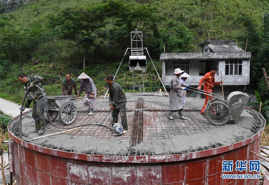在廣西都安瑤族自治縣龍灣鄉(xiāng)龍煥村大朋屯,當?shù)厝罕娫谛藿ㄋ瘢?019年7月23日攝)。廣西有近一半貧困人口生活在石漠化地區(qū),涉及數(shù)十個縣區(qū)。這里也是廣西飲水保障程度最低的地區(qū),解決貧困人口飲水問題是廣西脫貧攻堅戰(zhàn)“硬仗中的硬仗”。“十三五”以來,廣西加快實施農(nóng)村飲水安全鞏固提升工程。因地制宜,采取新建、擴建及管網(wǎng)延伸等多種措施,補齊貧困地區(qū)水利薄弱短板,進一步提升石漠化地區(qū)群眾飲水安全保障水平,助推脫貧攻堅。新華社記者陸波岸攝