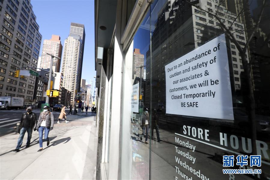 3月21日,在美國紐約第二大道,一家店鋪貼出閉店告示。美國紐約州、伊利諾伊州、康涅狄格州20日發(fā)布針對本州居民的“居家令”,以遏制新冠病毒傳播。這些“居家令”涵蓋紐約、洛杉磯、芝加哥等大城市,影響數(shù)千萬人。白宮20日發(fā)表聲明說,總統(tǒng)特朗普已宣布紐約州出現(xiàn)“重大災(zāi)難”,命令聯(lián)邦政府支援該州抗擊新冠肺炎疫情。新華社記者王迎攝