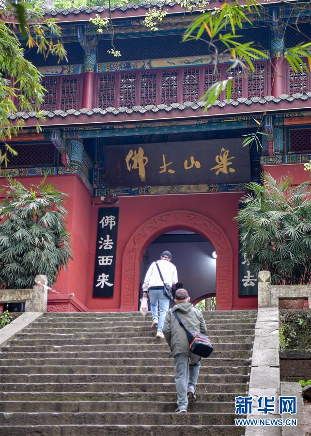 3月23日,游客在樂(lè)山大佛景區(qū)內(nèi)游覽。新華社記者張超群攝