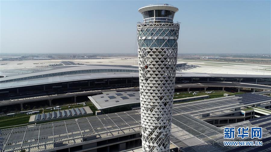 2019年6月12日無人機(jī)拍攝的建設(shè)中的青島膠東國際機(jī)場(chǎng)。新華社記者李紫恒攝