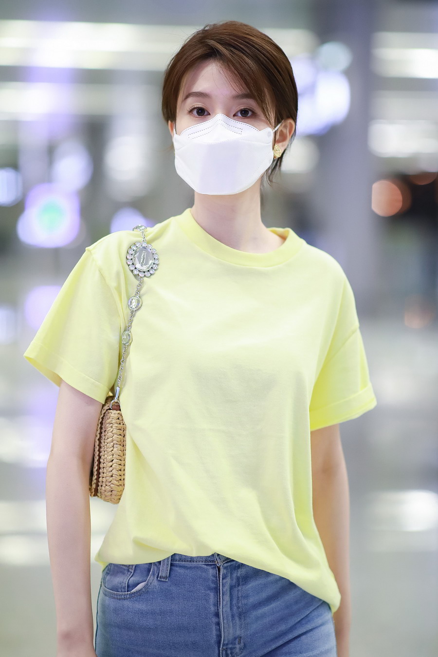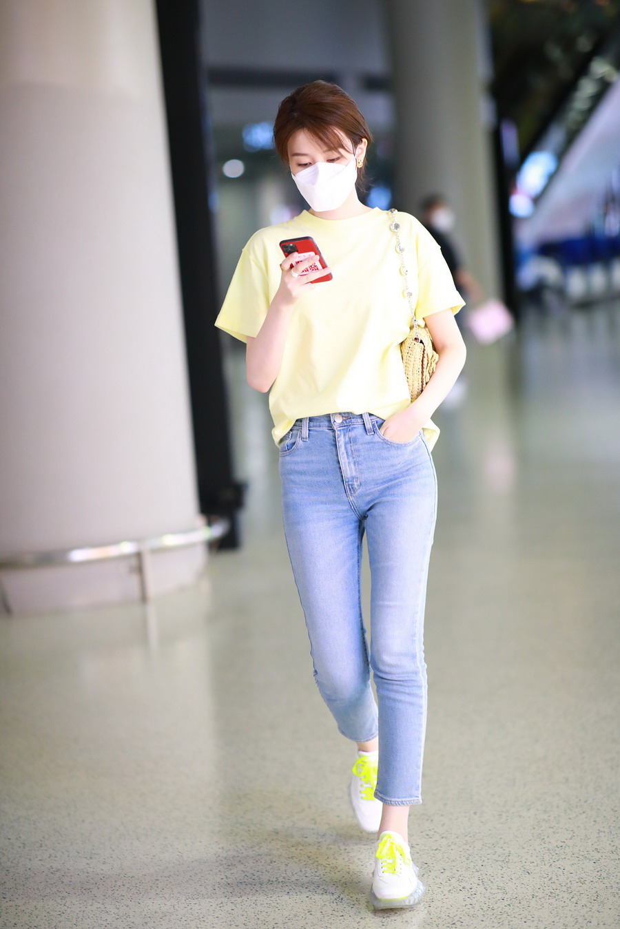 一秒入夏?喬欣私服穿搭堪稱“少女模板“ 黃色短T簡約清新顯元氣活力