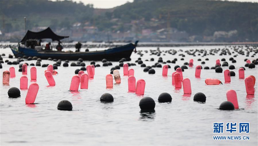 漁民在海洋牧場(chǎng)上工作(7月8日攝)。新華社記者姚劍鋒攝