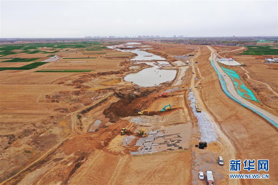 這是3月26日拍攝的雄安新區(qū)南拒馬河防洪治理工程(容城段)施工現(xiàn)場(無人機照片)。新華社記者楊世堯攝