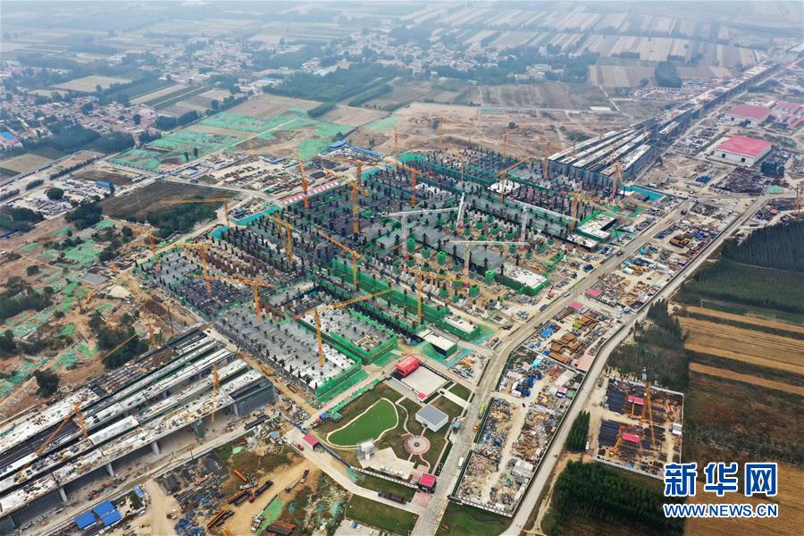 建設(shè)中的雄安站(10月10日無(wú)人機(jī)拍攝)。新華社記者邢廣利攝