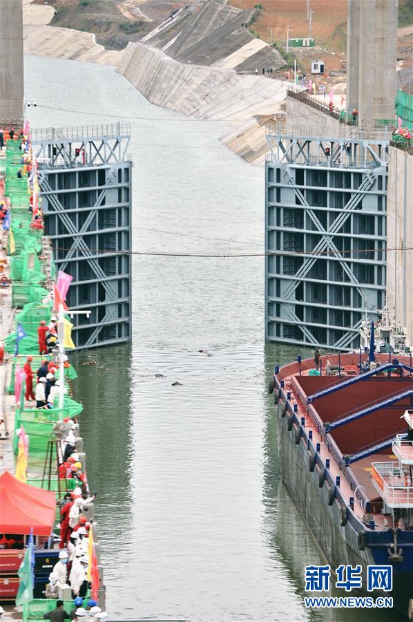 這是3月31日拍攝的正在打開(kāi)的大藤峽水利樞紐工程船閘上閘首人字門(mén)。當(dāng)日,廣西大藤峽水利樞紐工程船閘試通航啟動(dòng),預(yù)計(jì)一年后可正式通航。新華社記者崔博文攝