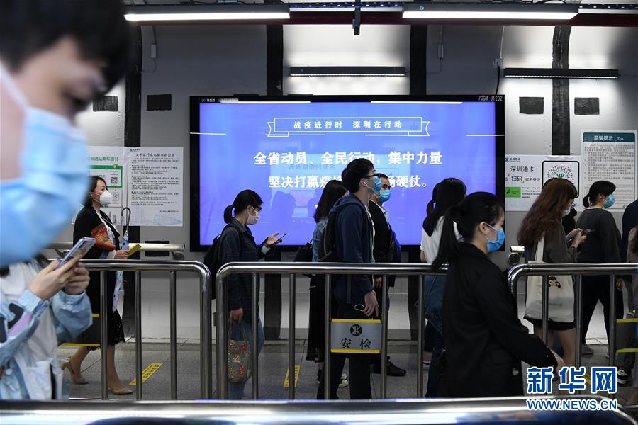 3月18日晚高峰時段,在深圳地鐵車公廟站,乘客排隊進站。新華社記者梁旭攝