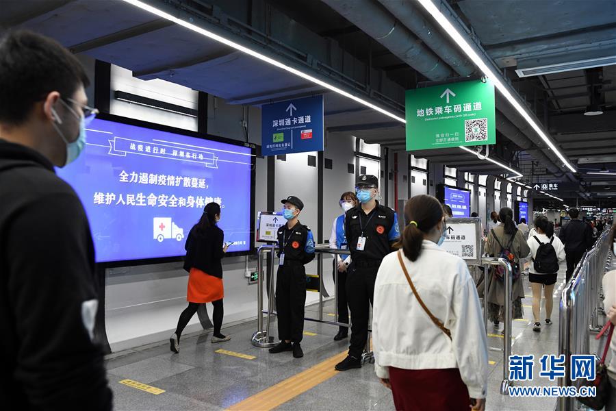 3月18日晚高峰時段,在深圳地鐵車公廟站,乘客按照車站指示牌進站。新華社記者梁旭攝