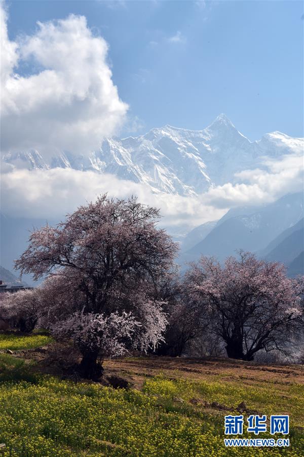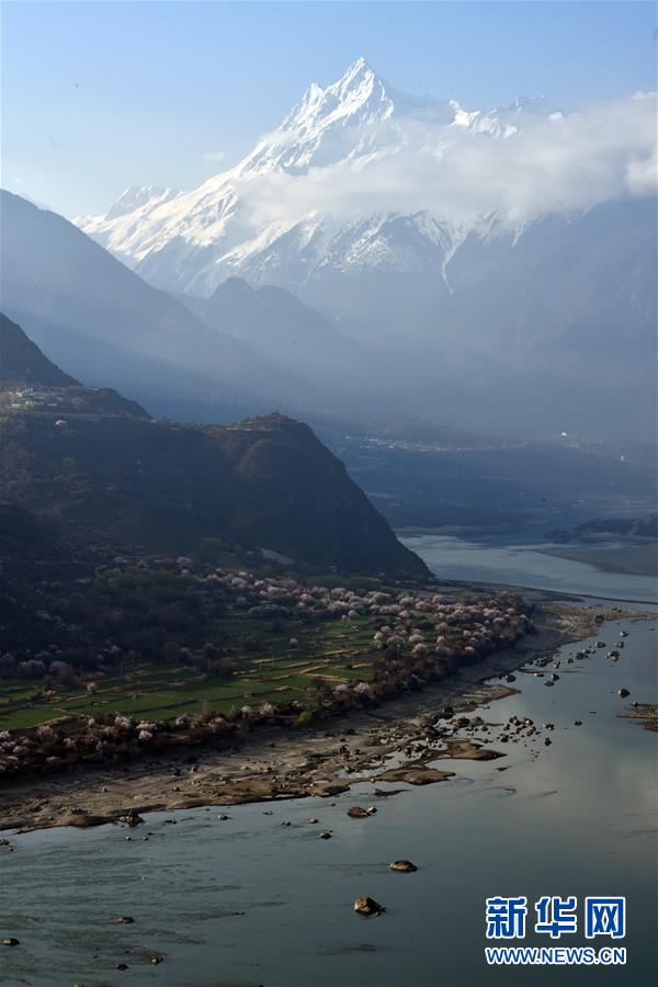 南迦巴瓦峰下盛開(kāi)的桃花(4月1日攝)。新華社記者侯捷攝