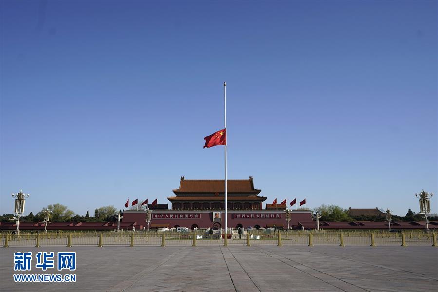 4月4日,北京天安門廣場降下半旗,表達(dá)對抗擊新冠肺炎疫情斗爭犧牲烈士和逝世同胞的深切哀悼。新華社記者 鞠煥宗 攝