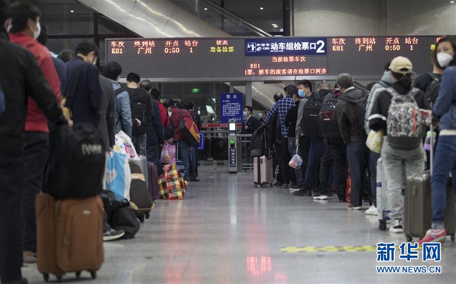 4月8日凌晨,乘客在武昌火車(chē)站排隊(duì)等候K81次列車(chē)。 新華社記者 費(fèi)茂華 攝