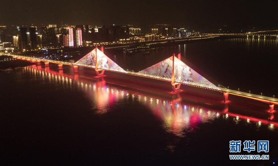 4月8日零時起,武漢市正式解除離漢離鄂通道管控措施,全市景觀照明開啟(無人機(jī)拍攝)。新華社記者程敏攝