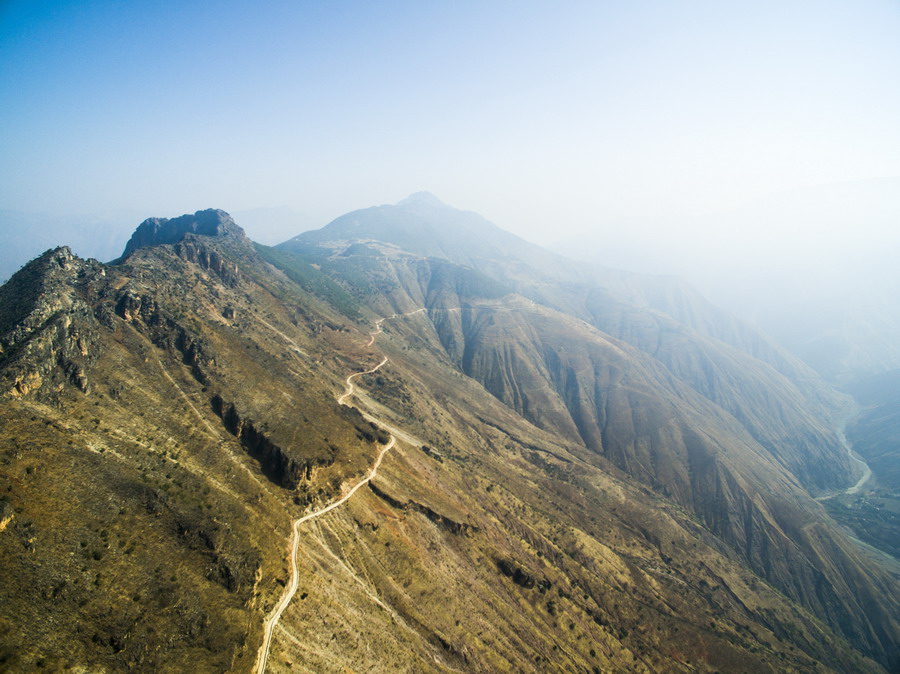 2020年4月5日,云南,昆明市祿勸縣雪山鄉(xiāng)基多村委會(huì)到基多村民小組的公。公路在原地盤(pán)旋海拔下降1200米。