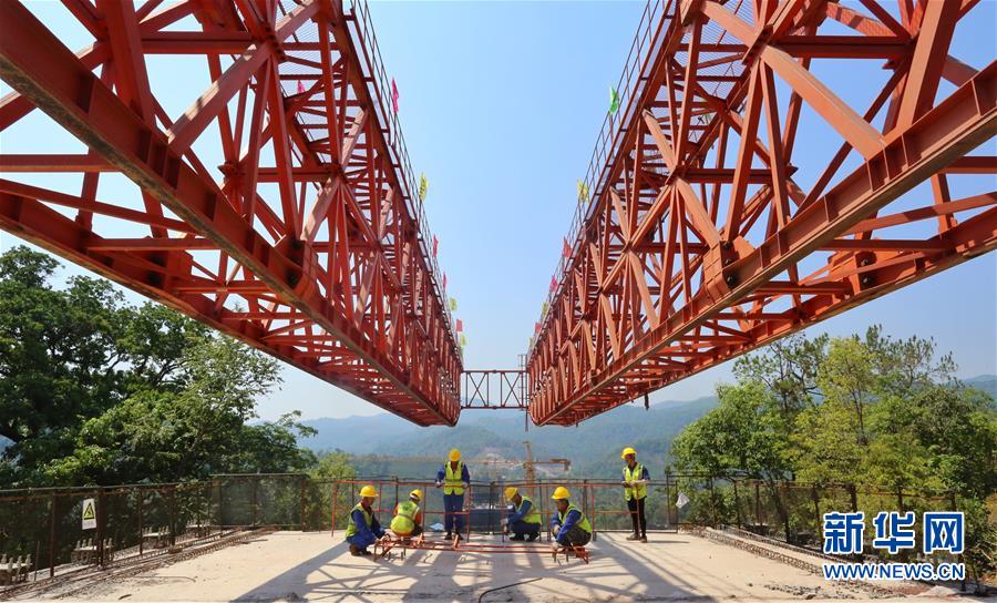 在位于普洱市的木乃河雙線特大橋工程現(xiàn)場,工人在施工作業(yè)(4月12日攝)。新華社記者秦晴攝