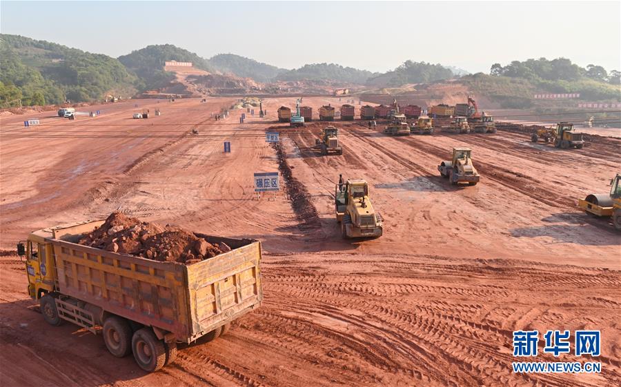 普洱車(chē)站施工現(xiàn)場(chǎng)正在進(jìn)行路基土方填筑施工(4月12日攝)。新華社記者秦晴攝