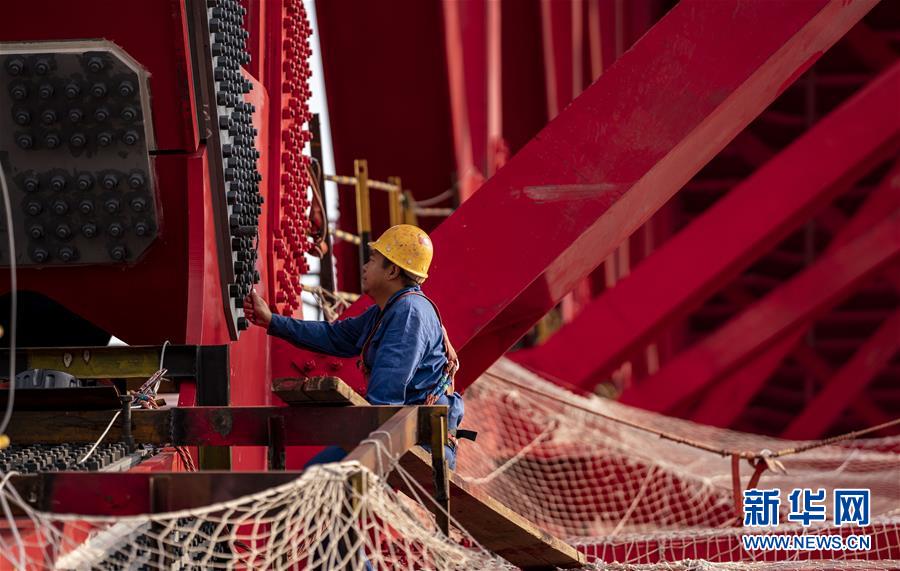 4月8日,中鐵四局的工人進(jìn)行油漆涂裝。新華社記者江文耀攝