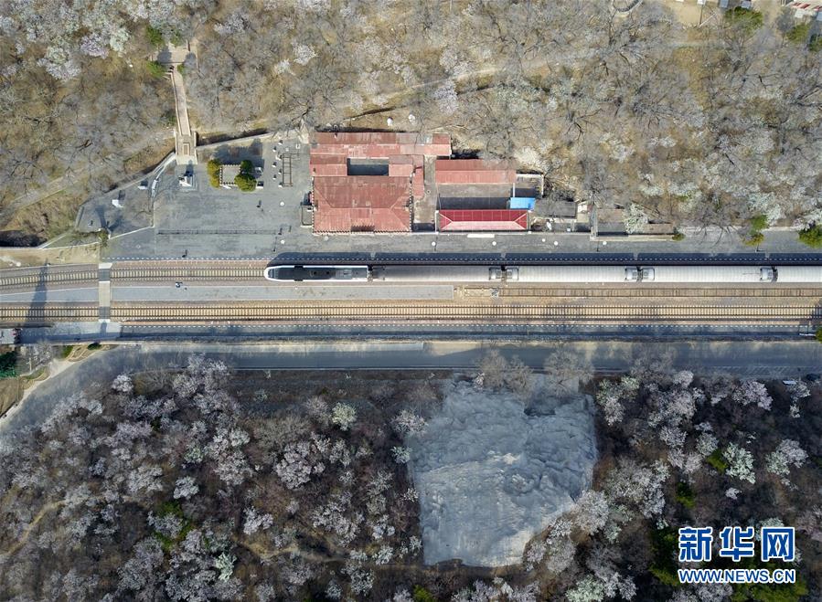 4月8日,北京青龍橋火車站附近春花盛開(無人機(jī)照片)。 新華社記者張晨霖攝