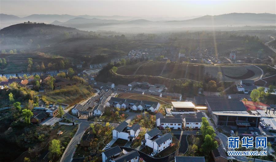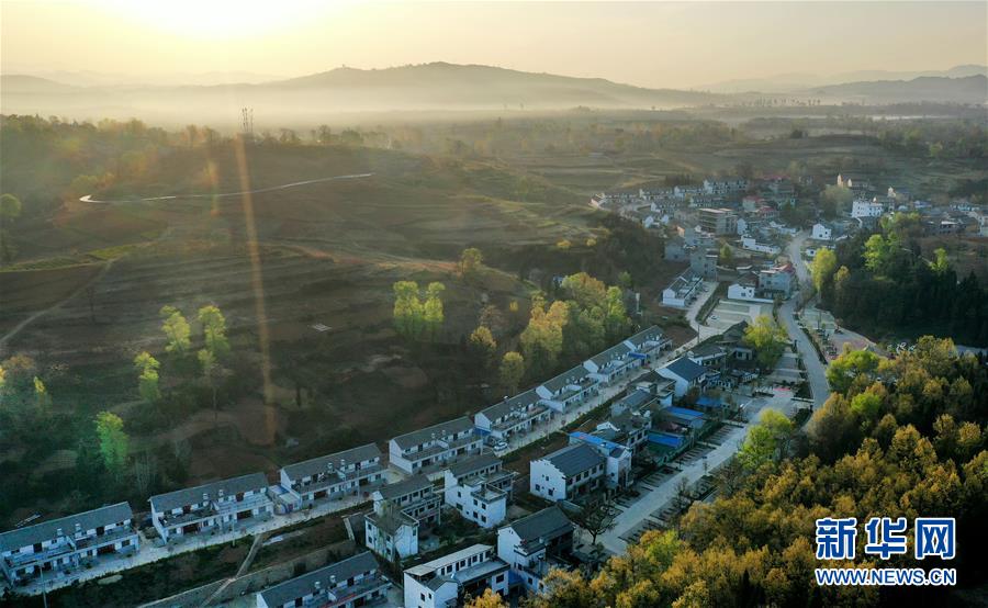 4月13日清晨時(shí)分拍攝的洛南縣城(無人機(jī)照片)。新華社記者陶明攝
