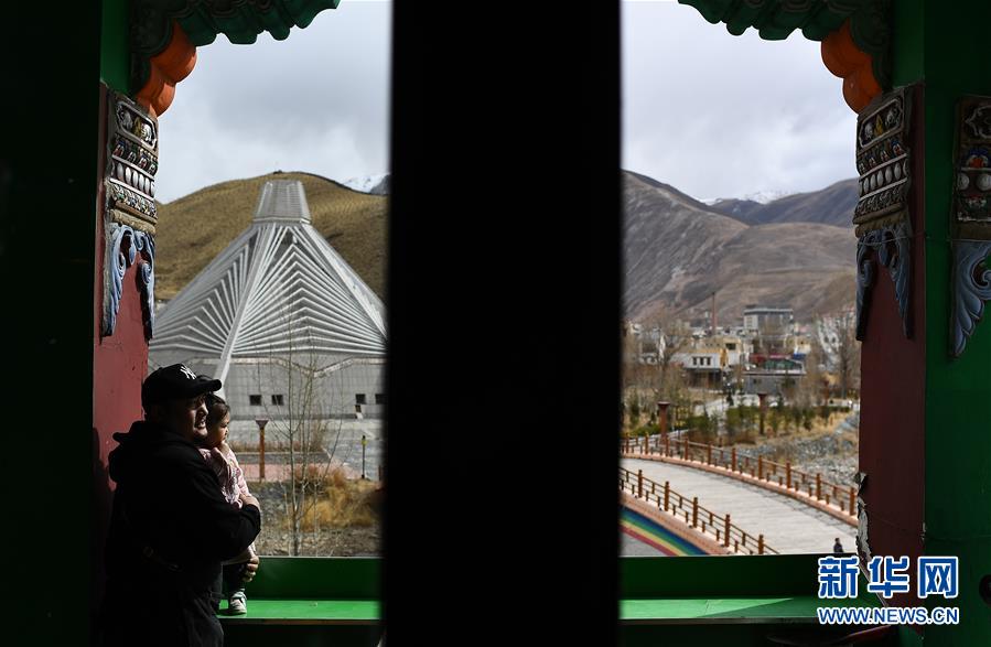 4月10日,才仁俄賽和女兒在餐廳門(mén)口。新華社記者張宏祥攝