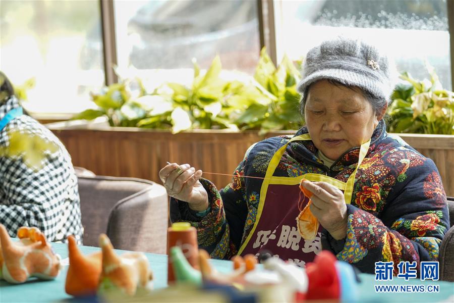 4月8日,在重慶石柱中益鄉(xiāng)巾幗扶貧工坊,當(dāng)?shù)貗D女縫制土家族風(fēng)情布老虎。近年來(lái),重慶市石柱土家族自治縣中益鄉(xiāng)在重慶市婦聯(lián)的幫助下,以當(dāng)?shù)胤沁z傳統(tǒng)技藝作為結(jié)合點(diǎn),把扶貧與扶志、扶智相結(jié)合,通過(guò)引進(jìn)外來(lái)文創(chuàng)企業(yè)對(duì)留守婦女、貧困及殘疾人群進(jìn)行刺繡培訓(xùn),設(shè)立巾幗扶貧工坊等多種形式,幫助當(dāng)?shù)卮迕駥?shí)現(xiàn)就業(yè)增收。據(jù)介紹,巾幗扶貧工坊運(yùn)行以來(lái),為當(dāng)?shù)仃懤m(xù)開(kāi)發(fā)出土家族布老虎、手提袋、餐墊繡邊、創(chuàng)意相框等一系列文創(chuàng)產(chǎn)品,幫助參加巾幗扶貧工坊的留守婦女和貧困村民實(shí)現(xiàn)月均增收近千元。新華社記者劉潺攝