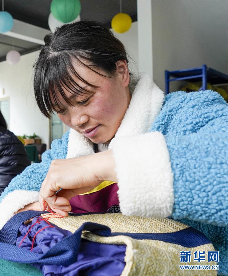 4月8日,在重慶石柱中益鄉(xiāng)巾幗扶貧工坊,當?shù)貗D女在縫制土家族風(fēng)情手提袋。近年來,重慶市石柱土家族自治縣中益鄉(xiāng)在重慶市婦聯(lián)的幫助下,以當?shù)胤沁z傳統(tǒng)技藝作為結(jié)合點,把扶貧與扶志、扶智相結(jié)合,通過引進外來文創(chuàng)企業(yè)對留守婦女、貧困及殘疾人群進行刺繡培訓(xùn),設(shè)立巾幗扶貧工坊等多種形式,幫助當?shù)卮迕駥崿F(xiàn)就業(yè)增收。據(jù)介紹,巾幗扶貧工坊運行以來,為當?shù)仃懤m(xù)開發(fā)出土家族布老虎、手提袋、餐墊繡邊、創(chuàng)意相框等一系列文創(chuàng)產(chǎn)品,幫助參加巾幗扶貧工坊的留守婦女和貧困村民實現(xiàn)月均增收近千元。新華社記者劉潺攝