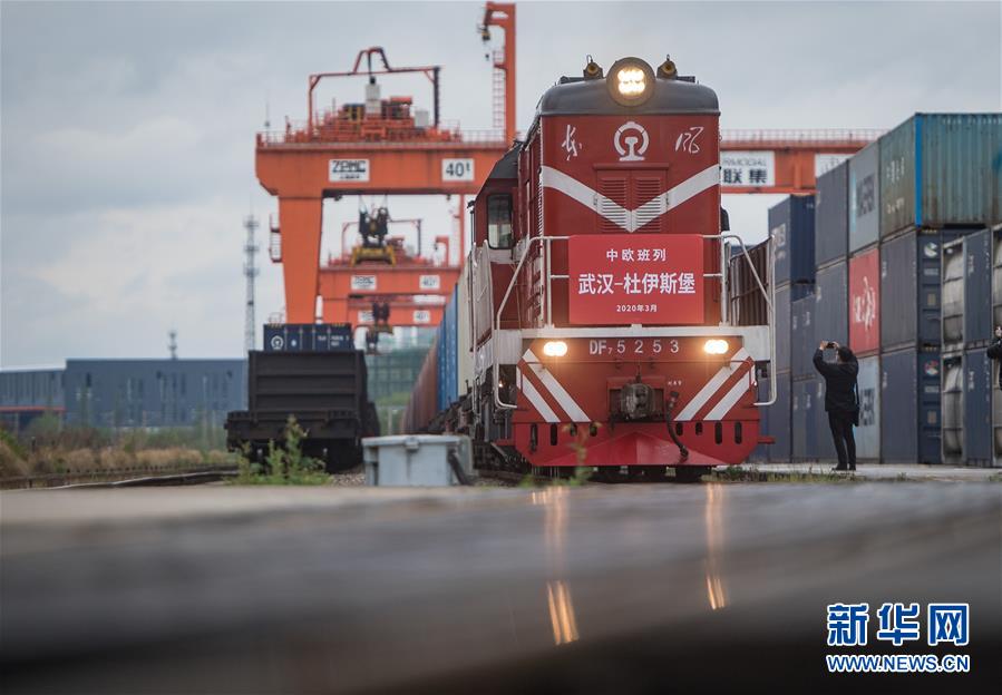 3月28日,開往德國杜伊斯堡的中歐(武漢)班列從中鐵聯(lián)集武漢中心站駛出。3月28日上午10點,中歐班列(武漢)X8015/6次運(yùn)載50只集裝箱從中鐵聯(lián)集武漢中心站始發(fā)。班列將從阿拉山口出境,預(yù)計15天后抵達(dá)德國杜伊斯堡。這是自疫情防控以來,從武漢開出的首趟中歐班列,標(biāo)志著中歐班列(武漢)恢復(fù)常態(tài)化運(yùn)營。新華社記者肖藝九攝