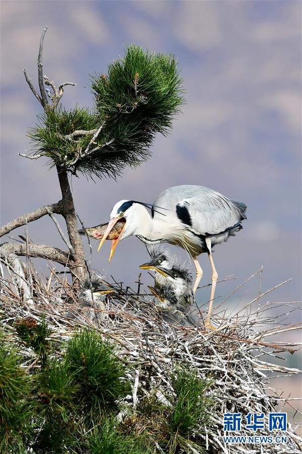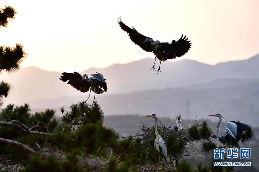 春日,大批蒼鷺在山西省呂梁市方山縣積翠鄉(xiāng)的樹(shù)林之中飛舞嬉戲,構(gòu)成一幅幅和諧生態(tài)畫卷。新華社發(fā)(劉亮亮攝)
