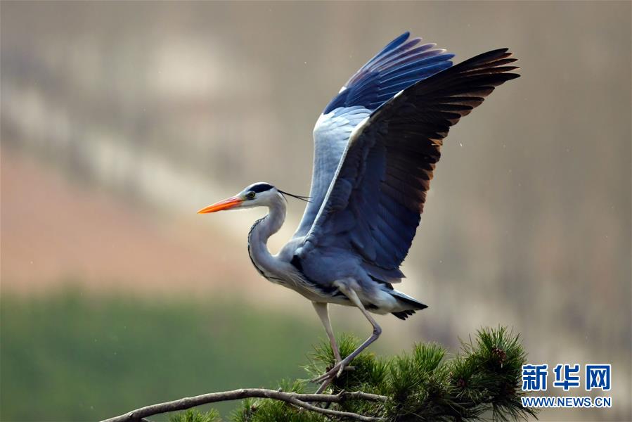 這是在呂梁市方山縣積翠鄉(xiāng)拍攝的蒼鷺(4月14日攝)。新華社發(fā)(劉亮亮攝)