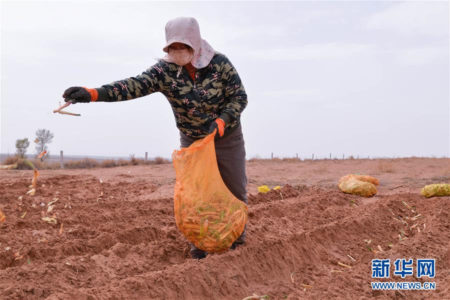 4月15日,農(nóng)民在杭錦旗道勞呼都格嘎查的農(nóng)田里播撒紅蔥苗。春種時節(jié),在內(nèi)蒙古鄂爾多斯市杭錦旗道勞呼都格嘎查,農(nóng)民忙著播種紅蔥。在鄂爾多斯高原種植的紅蔥耐旱耐寒,具有較好的經(jīng)濟效益。新華社記者徐欽攝