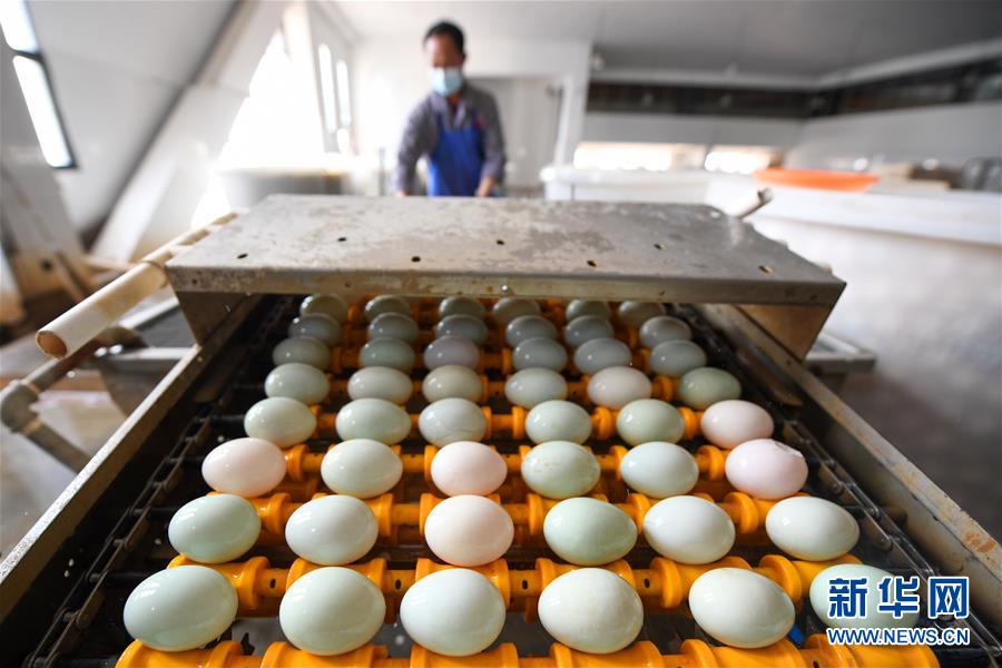 江蘇高郵鴨集團的工作人員將腌制好的鴨蛋放到塑封包裝流水線上(4月15日攝)。“高郵鴨蛋”是江蘇高郵的特色農業(yè)名片。近年來,當地在良種繁育、生態(tài)養(yǎng)殖、產品加工等方面加大力度,推動高郵鴨蛋品牌化建設,讓小鴨蛋成為帶動農戶致富的大產業(yè)。2019年,高郵市共計生產熟制鴨蛋產品近11.2億枚,年產值近17.68億元。新華社記者李博攝