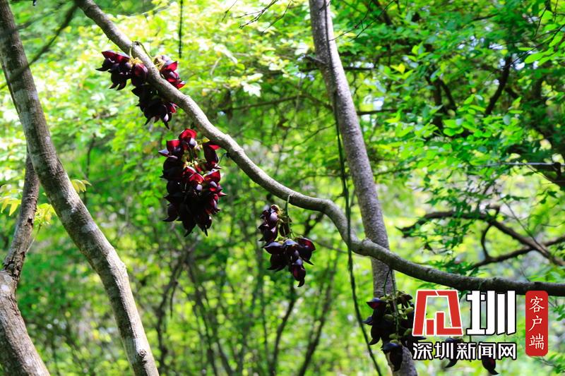 禾雀花序懸掛于悠長(zhǎng)盤曲的老莖上,吊掛成串,每串二、三十朵,串串下垂。