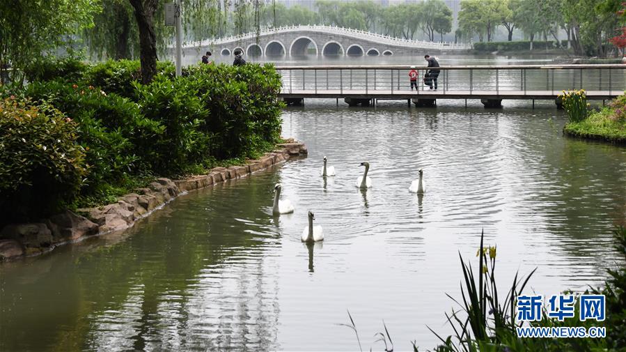 4月22日,游客在武漢動物園游玩。當日,在嚴格落實疫情防控措施的前提下,武漢動物園有序恢復開放。新華社記者程敏攝