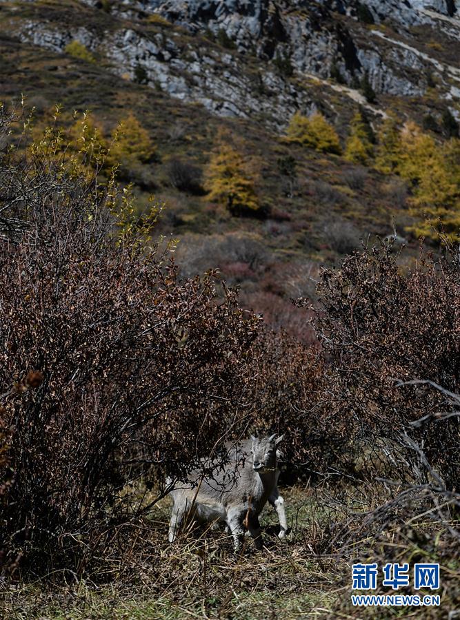 這是在四川亞丁國家級自然保護(hù)區(qū)拍攝的野生巖羊(2019年10月20日攝)。新華社記者唐文豪攝