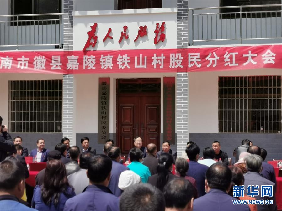 4月24日拍攝的甘肅省隴南市徽縣鐵山村公開(kāi)分紅大會(huì)現(xiàn)場(chǎng)。新華社記者張新新攝