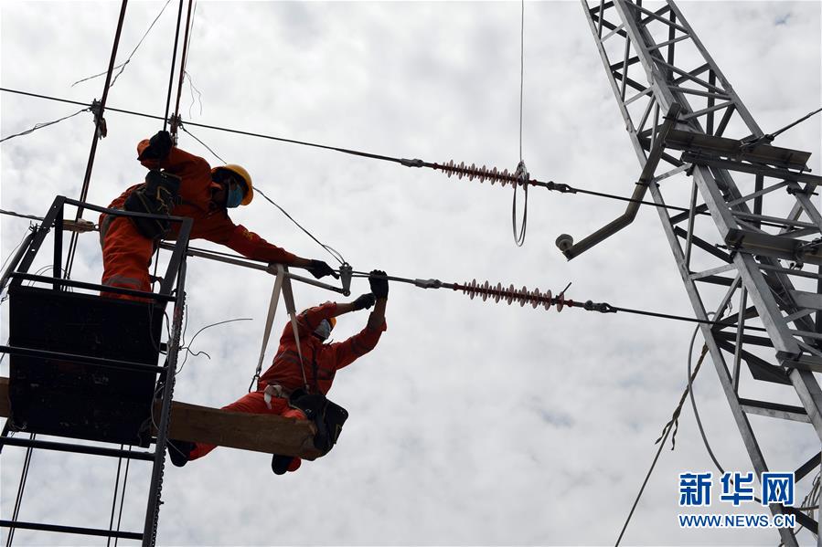 4月25日,在福建省寧德市屏南車站,施工人員開展接觸網(wǎng)調(diào)整作業(yè)。中鐵電氣化局集團(tuán)上海公司推動(dòng)衢寧鐵路福建段通信工程、信號(hào)工程、電力工程、電氣化工程各環(huán)節(jié)協(xié)同復(fù)工復(fù)產(chǎn),目前來自河北、河南、四川等國(guó)內(nèi)10個(gè)省的900多名員工返崗就業(yè)。衢寧鐵路北起浙江省衢州市,南至福建省寧德市,全長(zhǎng)379.2公里。新華社記者彭張青攝