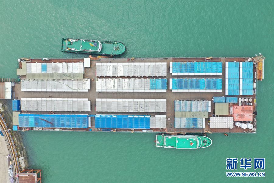 4月25日,幾名工人從海上生活區(qū)前往工地(無人機(jī)照片)。