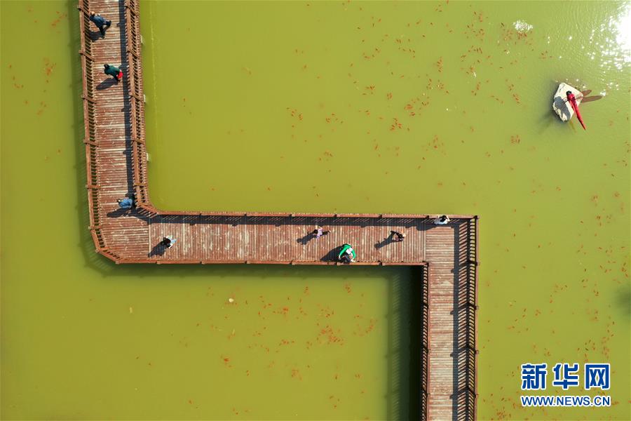 5月1日,游客在河南省鶴壁市淇濱區(qū)鉅橋鎮(zhèn)崗坡村棧橋上游玩(無人機(jī)照片)。河南省鶴壁市淇濱區(qū)鉅橋鎮(zhèn)崗坡村是一座有著千年歷史的古村落。近年來,淇濱區(qū)深入踐行鄉(xiāng)村振興戰(zhàn)略,打造以崗坡村為中心的龍崗鄉(xiāng)村振興示范帶,采取“村集體土地入股、資金入股、年底分紅”的運作模式,實現(xiàn)了“資源變資產(chǎn)、資金變股金、村民變股民”的“三變”。農(nóng)戶通過到龍崗鄉(xiāng)村振興示范園打工等方式,實現(xiàn)就近就業(yè),每人每月至少有2500元至3000元的保底工資。 新華社記者馮大鵬攝