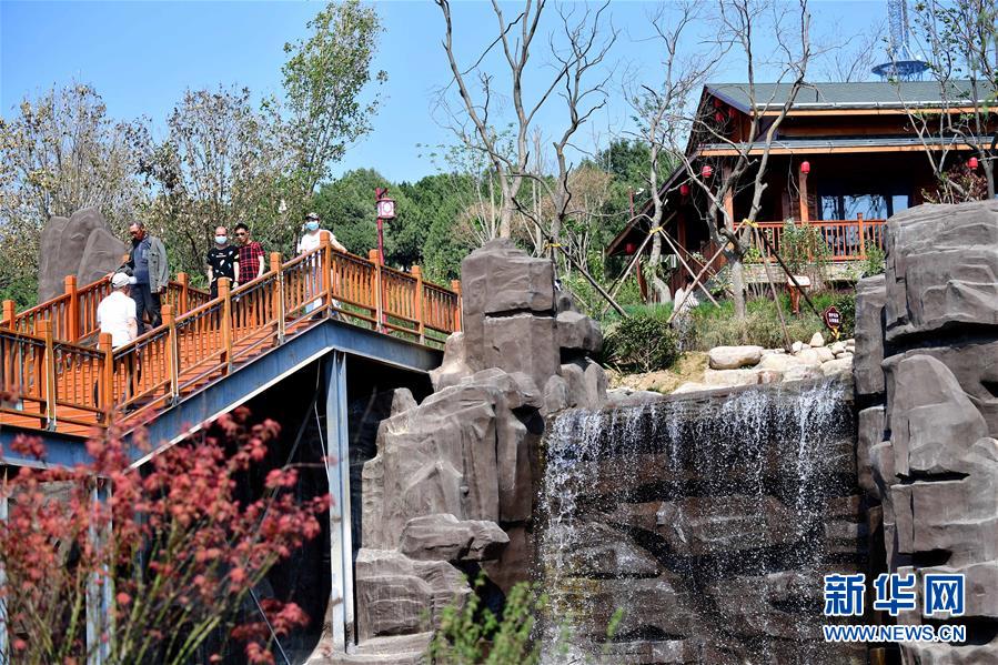 5月1日,游客在河南省鶴壁市淇濱區(qū)鉅橋鎮(zhèn)崗坡村渝派火鍋樂園里游玩。 新華社記者馮大鵬攝