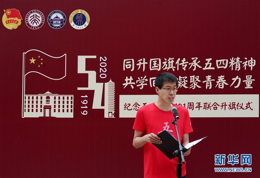 5月4日,北京大學(xué)青年代表在升旗儀式上發(fā)言。 當(dāng)日,北京大學(xué)通過與武漢大學(xué)、西藏大學(xué)、北京大學(xué)研究生支教團(tuán)聯(lián)合舉辦紀(jì)念五四運(yùn)動(dòng)升旗儀式以及北京大學(xué)2020年五四青春詩(shī)會(huì)等活動(dòng),傳承五四精神,紀(jì)念五四青年節(jié)。 新華社記者 張晨霖 攝
