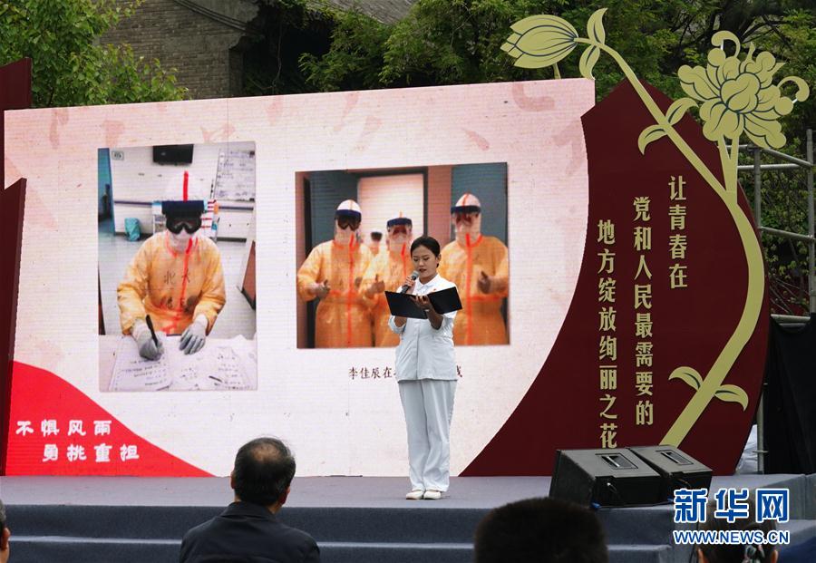 5月4日,北京大學(xué)援鄂醫(yī)療隊(duì)“90后”黨員代表在北大五四青春詩(shī)會(huì)朗誦。 當(dāng)日,北京大學(xué)通過與武漢大學(xué)、西藏大學(xué)、北京大學(xué)研究生支教團(tuán)聯(lián)合舉辦紀(jì)念五四運(yùn)動(dòng)升旗儀式以及北京大學(xué)2020年五四青春詩(shī)會(huì)等活動(dòng),傳承五四精神,紀(jì)念五四青年節(jié)。 新華社記者 張晨霖 攝