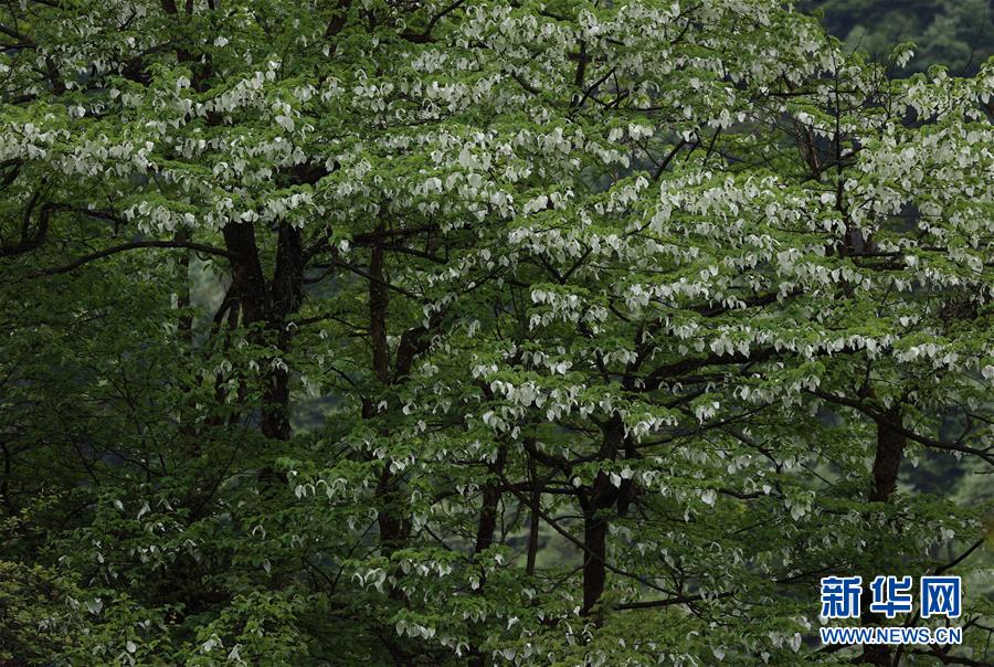 位于四川省滎經(jīng)縣的龍蒼溝國家森林公園里,鴿子花盛開(5月4日攝)。目前,位于四川省大相嶺山脈東麓北坡的龍蒼溝國家森林公園里,約8萬畝鴿子花盛開,猶如鴿群展翅欲飛。鴿子花即珙桐花,珙桐是珍稀植物,有著植物“大熊貓”“活化石”之稱,是國家一級保護植物,也是著名的觀賞植物。2008年,華中農(nóng)業(yè)大學、湖北民族學院和四川省縈經(jīng)縣林業(yè)部門聯(lián)合對龍蒼溝森林公園的珙桐進行了種群生態(tài)學調查,發(fā)現(xiàn)珙桐在這里共分布約8萬畝,集中成片分布近4萬畝。珙桐面積之大、株數(shù)之多、密度之高,十分罕見。新華社記者 江宏景 攝