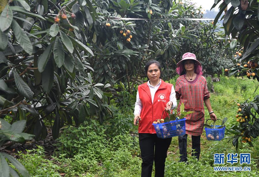 唐莉(左)在平樂縣張家鎮(zhèn)老埠村了解村民家庭農(nóng)場運營情況(5月4日攝)。新華社記者周華攝