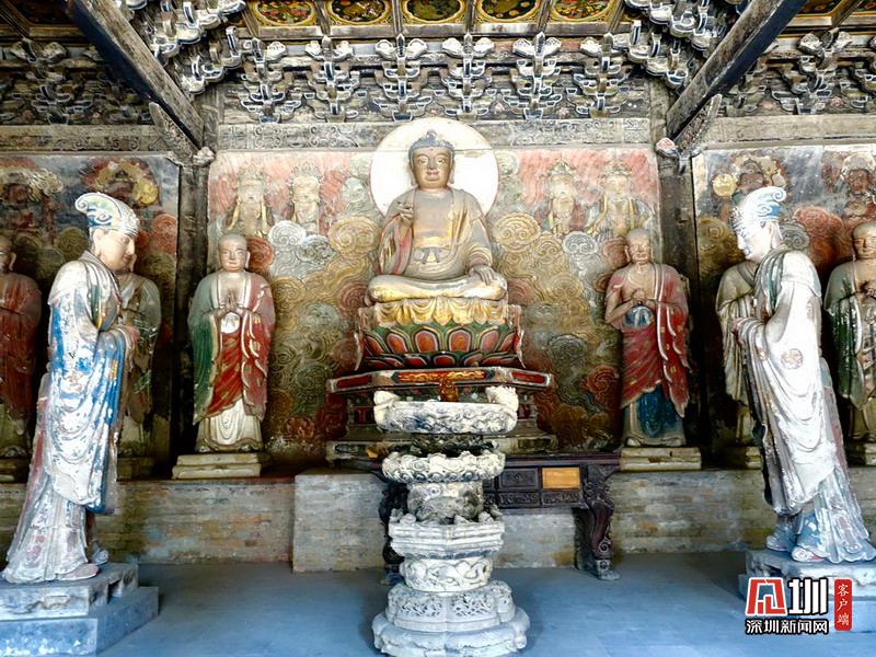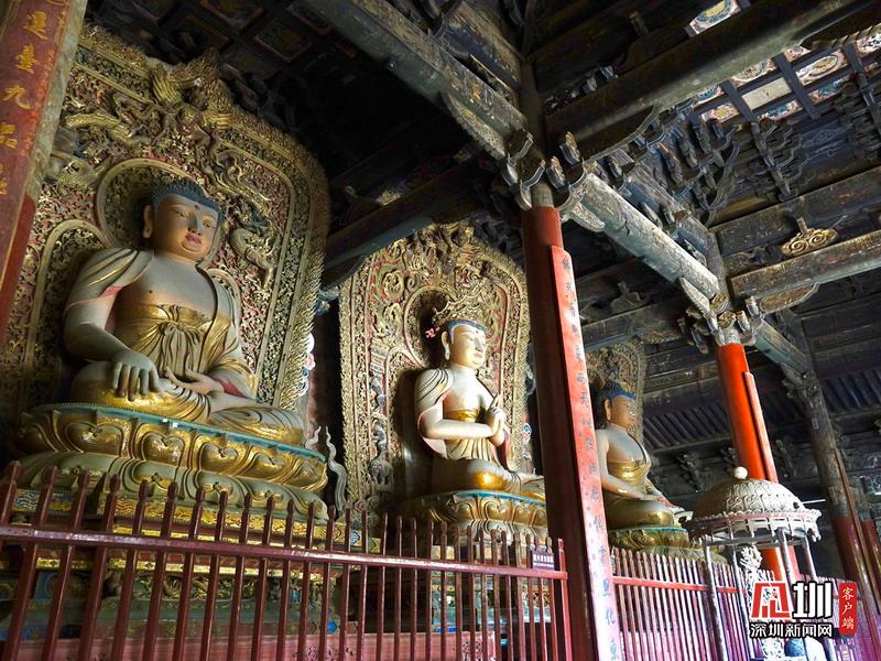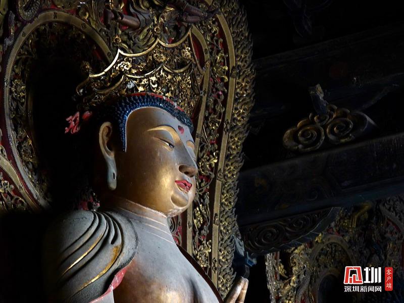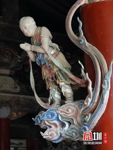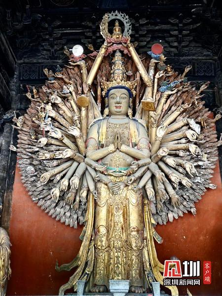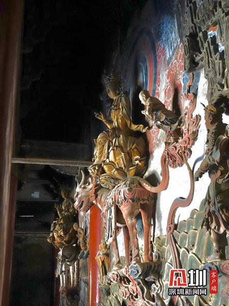 報恩寺布局結(jié)構(gòu)酷似北京紫禁城,被稱為“深山故宮”。寺內(nèi)古木參天,氣象森嚴,飛檐凌空,金碧輝煌。大悲殿中的用整根楠木雕成的千手千眼觀音像、華嚴藏中的轉(zhuǎn)輪經(jīng)藏和泥塑蟠龍,以及遍布全寺的彩繪壁畫,都是世間罕見的藝術(shù)珍品。李仁奇攝
