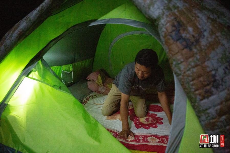 2020年5月3日,湖北省襄陽(yáng)市,在南漳三道河水庫(kù)小島上,小島養(yǎng)蜂人趙德海忙碌了一天,晚上收拾帳篷準(zhǔn)備在島上入睡。